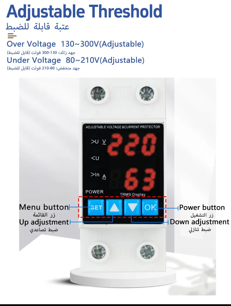 - Teste de Funcionamento: Manualmente ou utilizando fonte ajustável, abaixe a tensão abaixo do limite de subtensão e observe se o protetor desliga a carga; em seguida, ajuste de volta à tensão normal e confirme se o protetor reinicia automaticamente após o atraso definido.