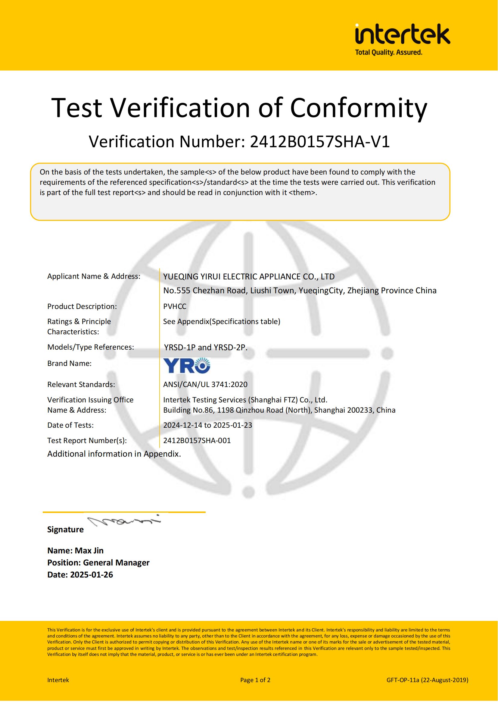 Adicionalmente,Certificação Ul3741é essencial para a conformidade regulatória. À medida que mais regiões e países introduzem regulamentos de segurança mais rigorosos para instalações solares, a obtenção desta certificação garante que os componentes da YRO atendam a esses requisitos, simplificando o processo para os clientes cumprirem as leis e códigos locais.